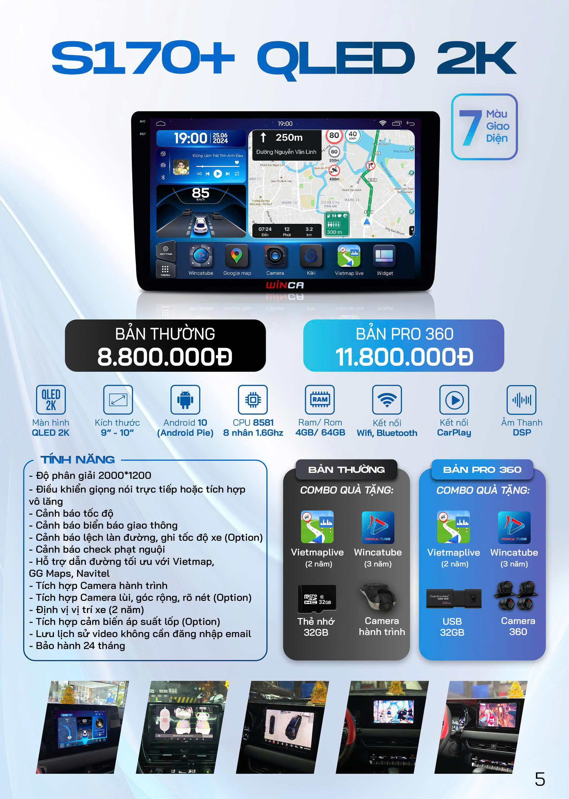 S170+ QLED 2K PRO 360 có độ phân giải 2000×1200 pixel nên hình ảnh rất nét. Xem bản đồ dễ nhìn, xem camera rõ chi tiết, giải trí cũng đỡ mỏi mắt hơn. Kích thước 9 inch hoặc 10 inch vừa vặn, thao tác thoải mái mà không che tầm nhìn.